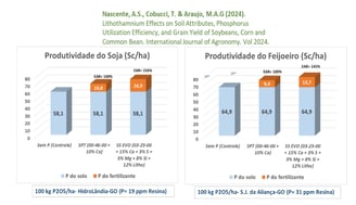 A quantidade absorvida do elemento P pela planta, tem alta correlação com produtividade. Nem sempre a maior quantidade aplicada irá proporcionar maior produtividade. Mas a maior quantidade absorvida terá grande possibilidade de promover maior produção. OU seja, podemos empregar tecnologias no fertilizante para aumentar a absorção do elemento pela planta mesmo aplicando menores quantidades do elemento P no solo. Desta forma o emprego do EAR consegue mostrar esta otimização.